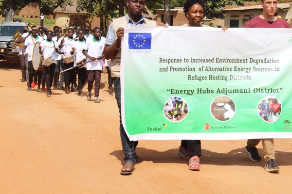 We were especially active in Adjumani, where Zeus, Tonny, Derrick and Kirian held, together with our local field staff, several energy hub exhibitions as part of the Response to increased environmental degradation and promotion of alternative energy technologies in refugee hosting districts (RED) project. These aimed at sensitizing the local communities to the use of more sustainable and energy efficient solutions, ranging from fireless cooking baskets and the use of briquettes made from charcoal dust (a waste material) to solar power and mobile solar lamps. For the final exhibition, Sylivia and Prossy joined us as well. This one included a march through the city and a joint exhibition with Biogas Solutions Ltd., Eco stove and CREEC.